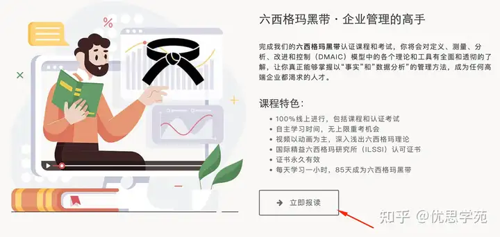 在官网首页可以轻易找到绿带和黑带的相关报名入口。绿带适合入门进阶者,黑带则是职业管理人的主战场。选择合适的课程后,点击“立即报读”,课程即自动加入购物车。