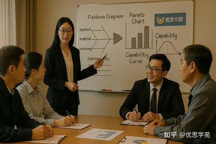 很多老板不是排斥数据,而是听不进“统计语言”。把分析与验证的过程,讲成“前—因—果—证据—收益”的故事:我们过去三个月有多少起客户抱怨,这是痛点;因为什么流程节点不稳定、哪几个因子影响最大,这是原因;我们试了哪三种低成本对策,怎么验证有效,这是证据;现在返工率降了、交期兑现了、产能释放了,这是收益。优思学院在六西格玛术语与定义的梳理中,强调对关键指标的通俗化理解与应用,推进者的任务就是把“Jargon”翻译给业务。
