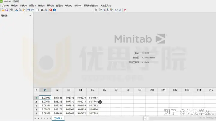 第一步,把数据按子组(5个)输入到Minitab中,共25列。