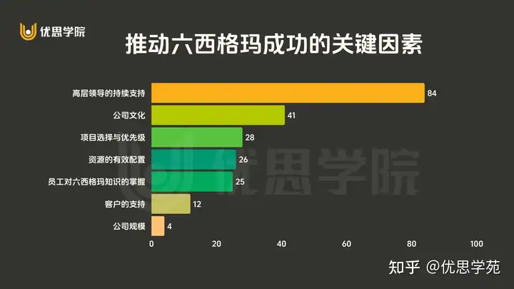 高层支持占比近75%,公司文化次之。这表明领导力和组织氛围是成功基石,而非单纯技术工具。
