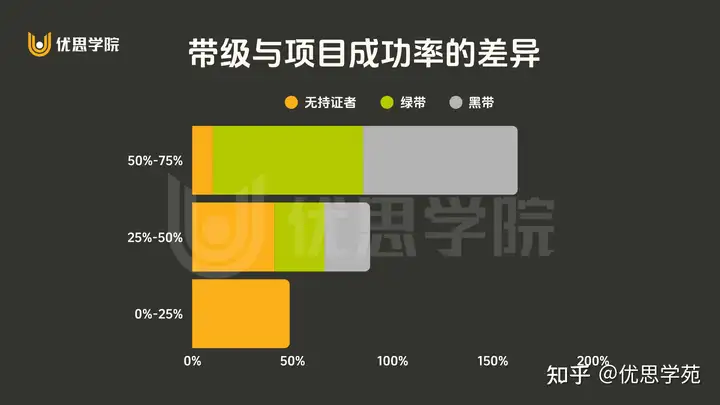低成功率群体通常集中在无持证书者,这一差异清楚反映了六西格玛培训的重要性。优思学院认为对于个人而言,获取绿带或黑带证书不仅提升了专业能力,也显著提高了推动改进项目成功的可能性。对企业来说,若希望改善成效更稳定、提升整体竞争力,支持员工参与系统化培训、推动更多人取得证书,将是非常直接有效的途径。